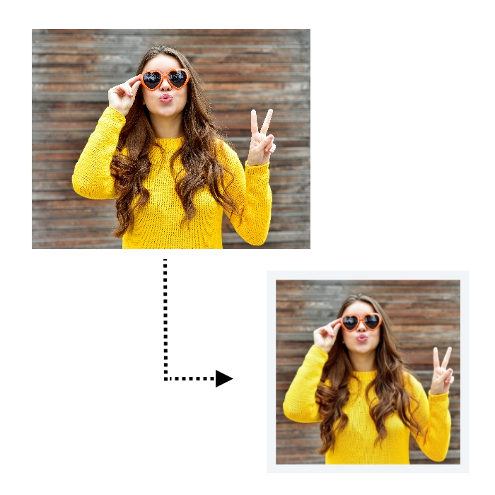 Wordt jouw foto niet goed weergegeven door ons systeem en wil je hem toch gebruiken, dan kan je hem best vooraf zelf bijsnijden tot een vierkant.